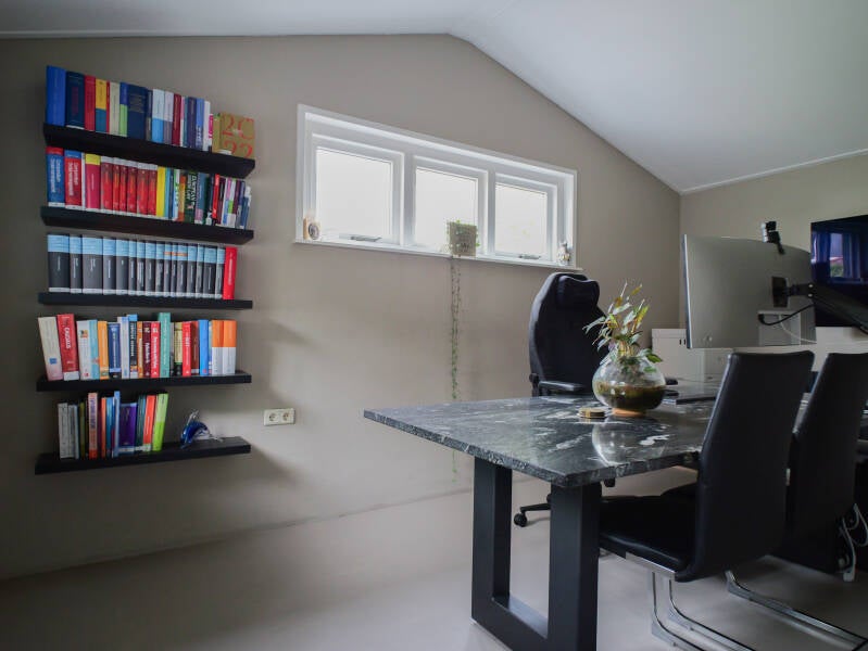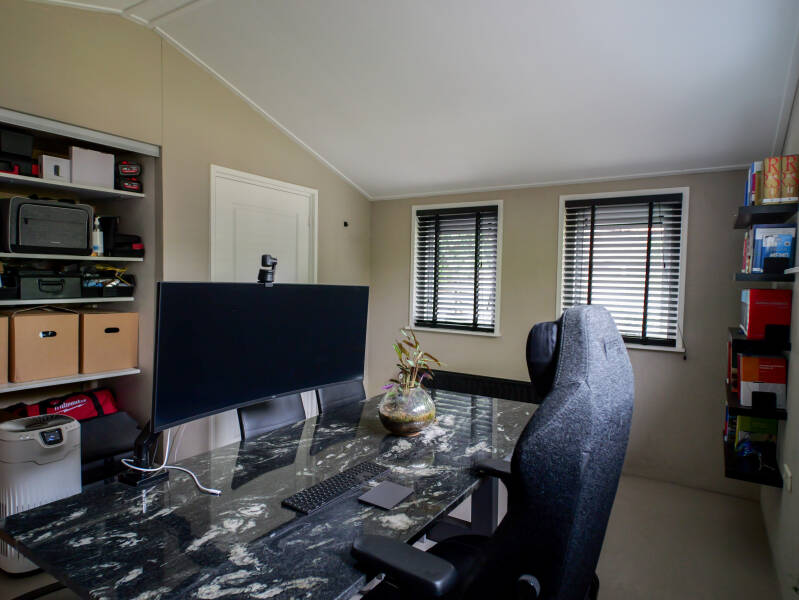 Aan de achterzijde van de woning bevindt zich een royale slaapkamer met handige inbouwkasten. Deze ruimte is ideaal als master bedroom, waardoor je kunt genieten van een compleet woonprogramma op de begane grond. Maar de kamer is ook uitstekend geschikt als logeerkamer, werkkamer of hobbyruimte. De ligging aan de tuinzijde maakt de kamer rustig en aangenaam, met volop mogelijkheden om deze naar eigen wens in te richten.