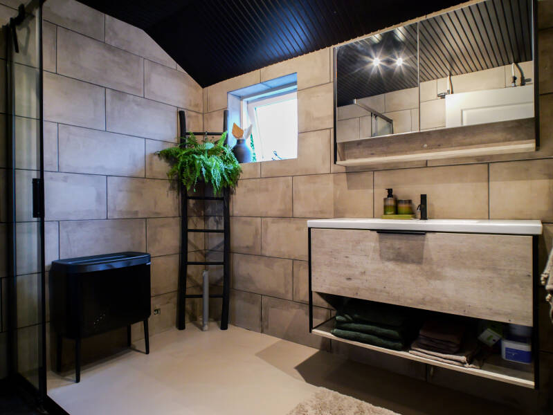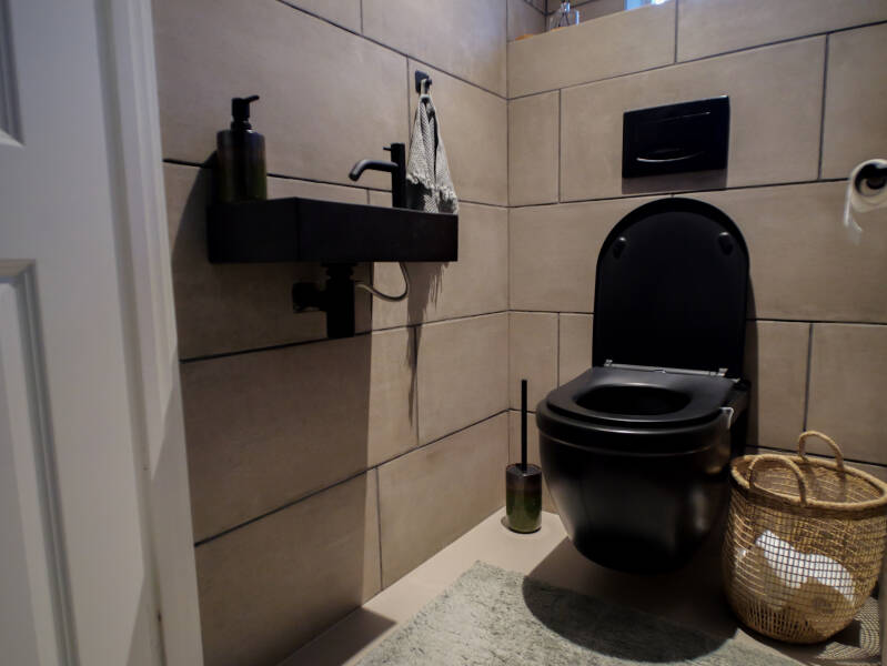 De volledig vernieuwde badkamer is een plek van ontspanning en luxe. Uitgevoerd met een natuurstenen douchebak, een stijlvol badkamermeubel en ruimte voor de plaatsing van een bad, biedt deze ruimte alles wat je nodig hebt om te ontspannen na een drukke dag. De vernieuwde verwarming aan de wand, geeft extra comfort en maakt het plaatje compleet. Direct naast de badkamer bevindt zich het eveneens vernieuwde, aparte toilet, uitgevoerd in een modern zwart design dat perfect aansluit bij de eigentijdse stijl van de woning.